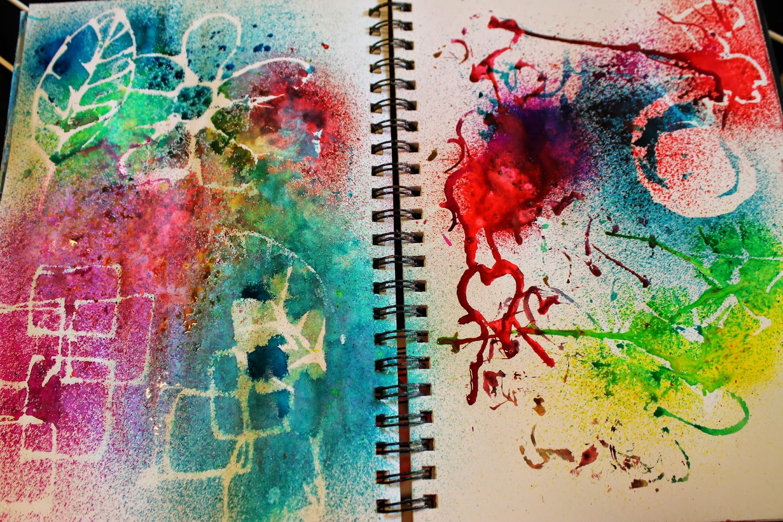 medium,gelliplatte ja akryylimaalit, vesiluikoiset liidut,