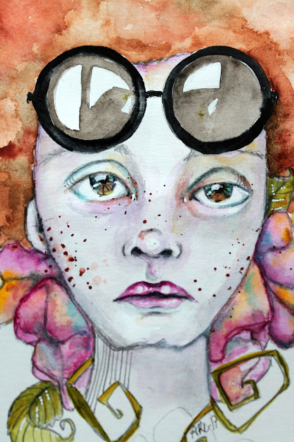 Olen instagramissa huokaillut ja ihastellut Tracy Lewisin töitä jo jonkin aikaa. Enkä voi tajuta hänen värien käyttöään, joka on mieletöntä ja maagista. piirrustusaitoaan ja maalausta noin ylipäätään. Vesivärit ovat hänelläkin keskiössä ja ....nyt kokeilin jotain hänen tyylinsä suuntaista. Etsin kasvokuvan - yritin tavoittaa realistisia suhteita ja muotoja - ja sitten maalaamaan. Tätä on tehty hitaasti kerros kerrokselta. Kyllä koen, että jotain uuttakin opin... Toki paljon on vielä matkaa. Niinkuin aina.